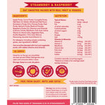 Apple Puree, Carrot Puree, Courgette Puree, OAT Base 13% (Water, Wholemeal OAT Flour), Strawberry Puree (10%), Parsnip Puree, Pear Puree, Spinach Puree, Beetroot Powder, Raspberry Puree (1%), Vitamins and Minerals (Calcium Citrate, Riboflavin, Folic Acid, Iodine, Vitamin D, Vitamin B12), Vegetable Fibre, Acidity Regulator: Citric Acid, Natural Flavouring, Ascorbic Acid (Vitamin C).